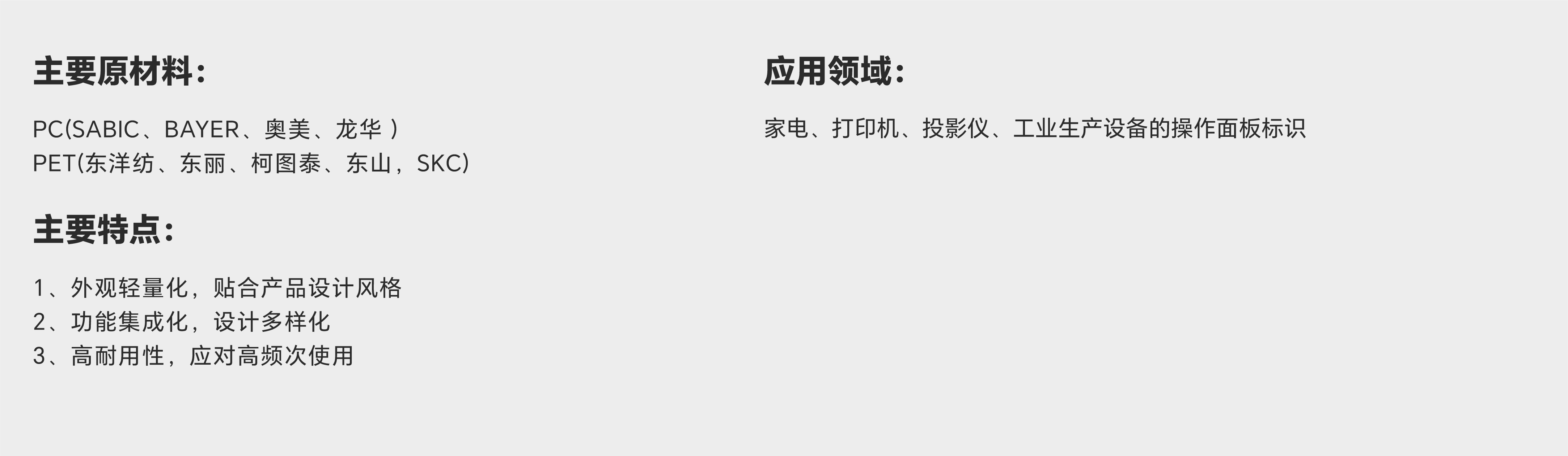 消费电子面板 OA面板 工控面板 按键面板 汽车零部件面板